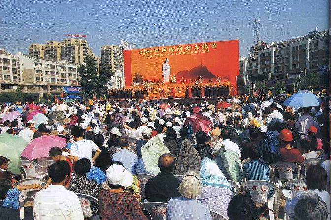二○○九年國際濟公文化節在浙江天台縣商業大廣場,隆重舉行祈禱世界和平大法會,會場中擠滿觀禮人潮盛況空前